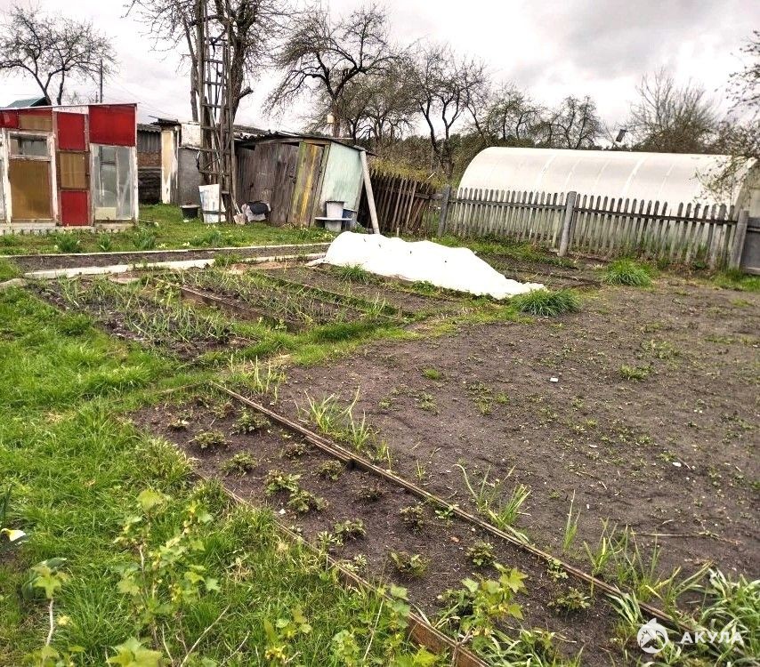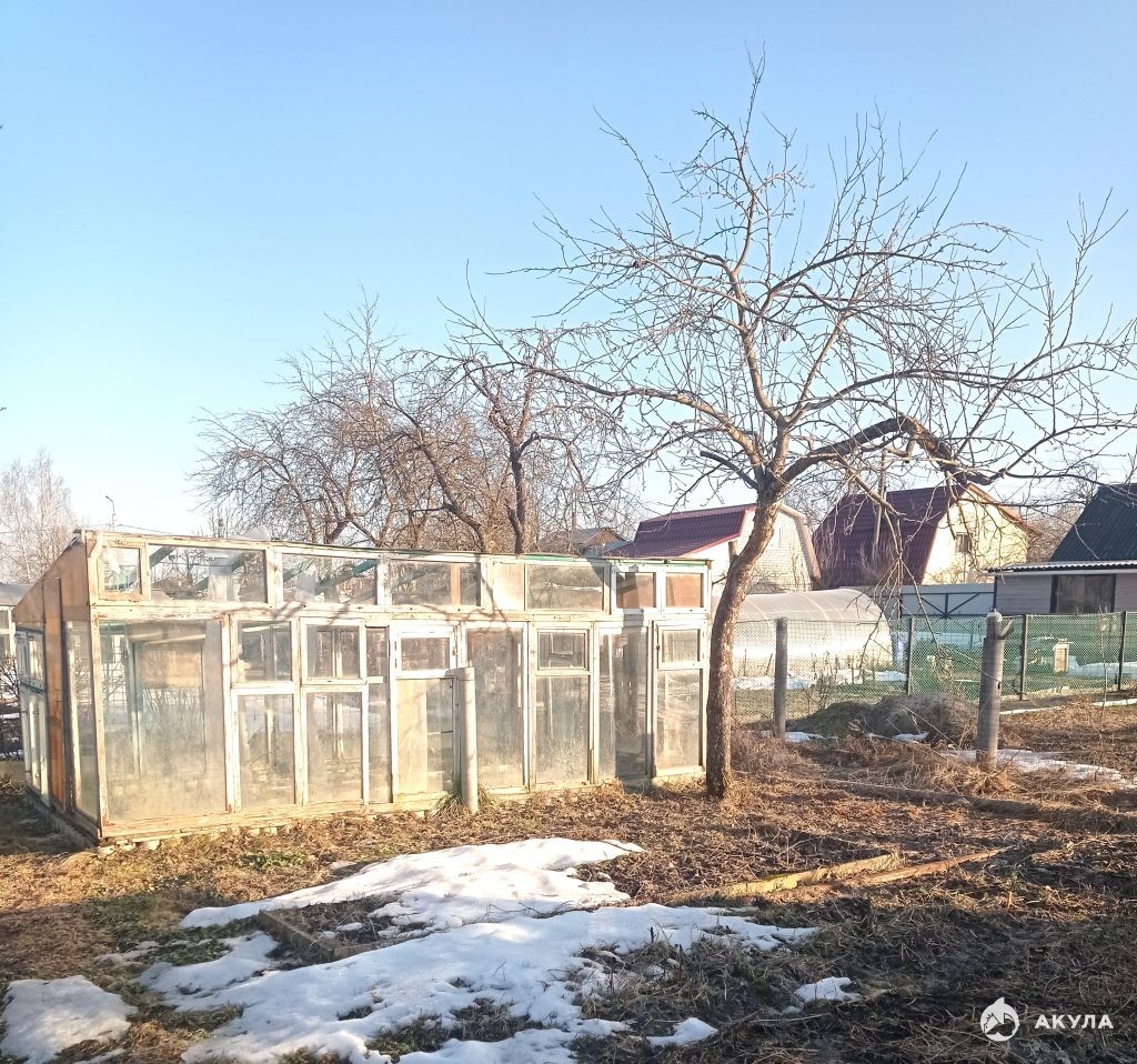 Земельный участок правильной формы, две самодельные теплицы, садовые насаждения: яблони, крыжовник, малина,