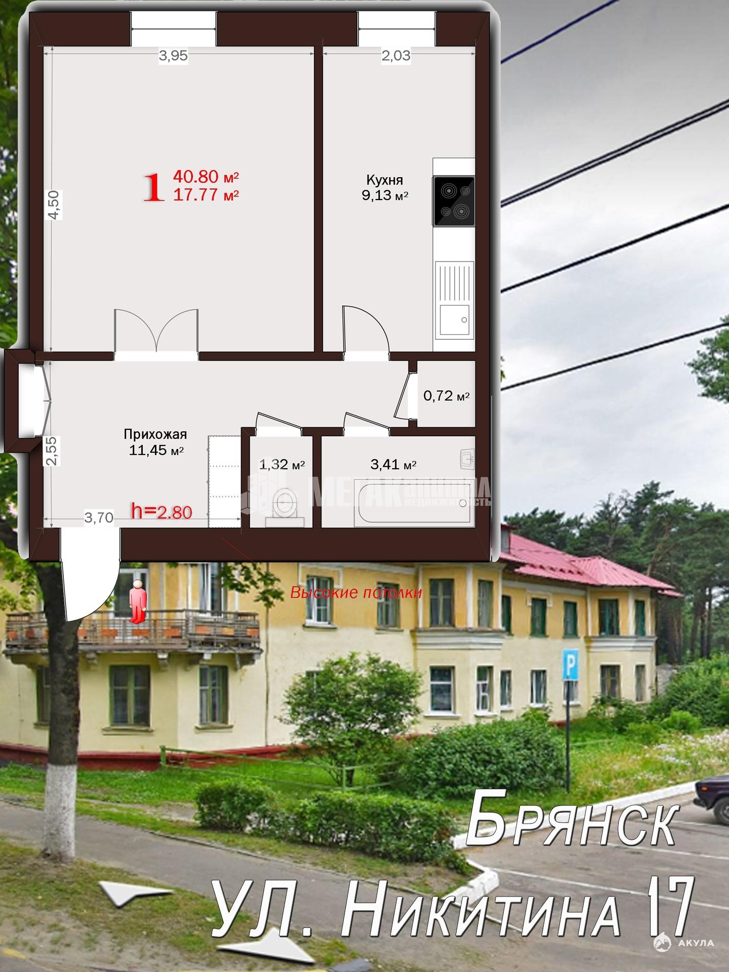 - 17.8 м²