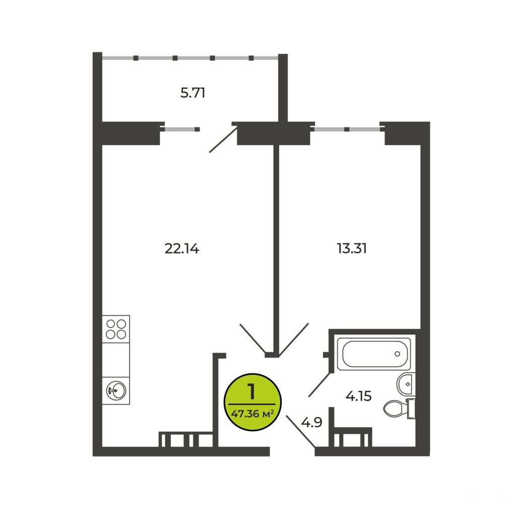 - 22.14 м²