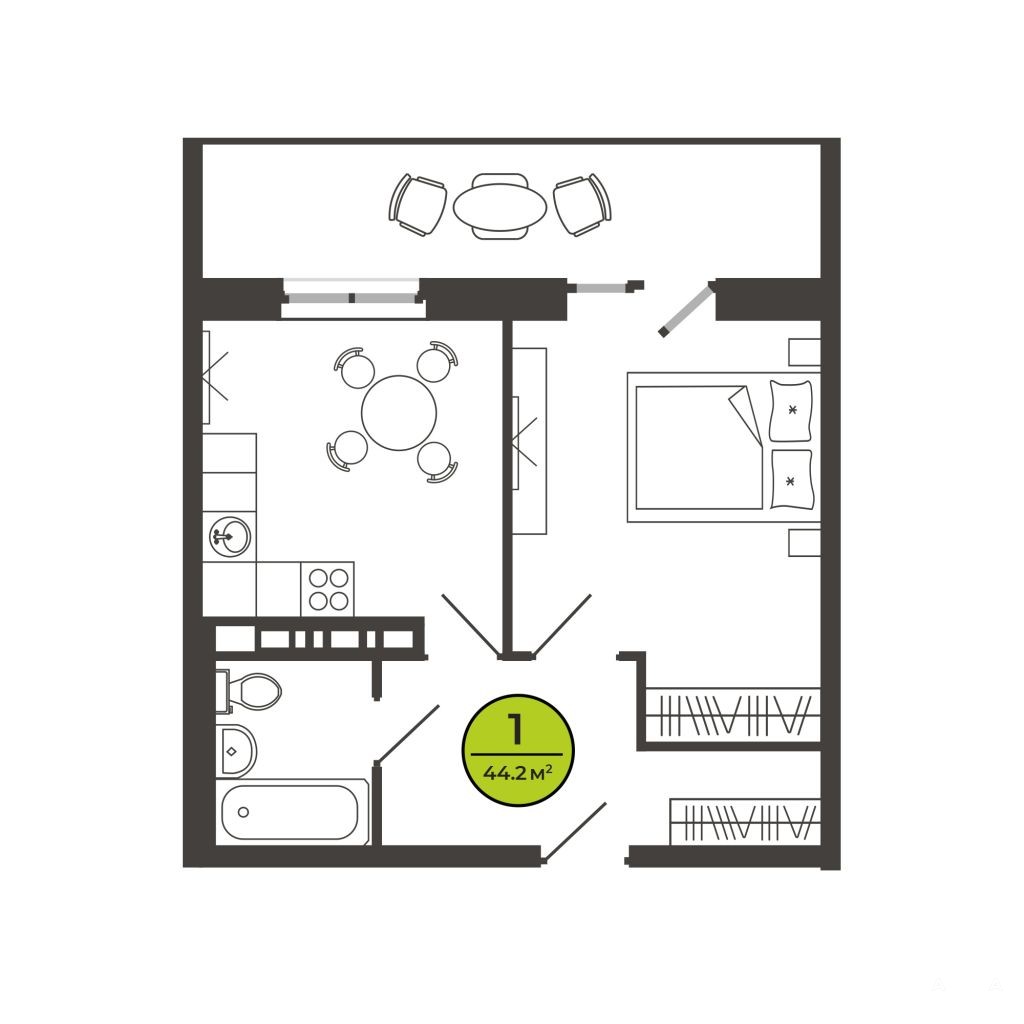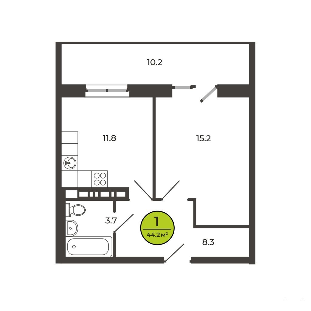 - 44 м²