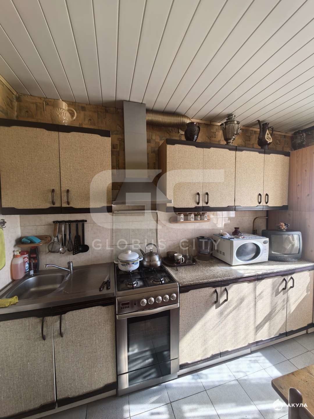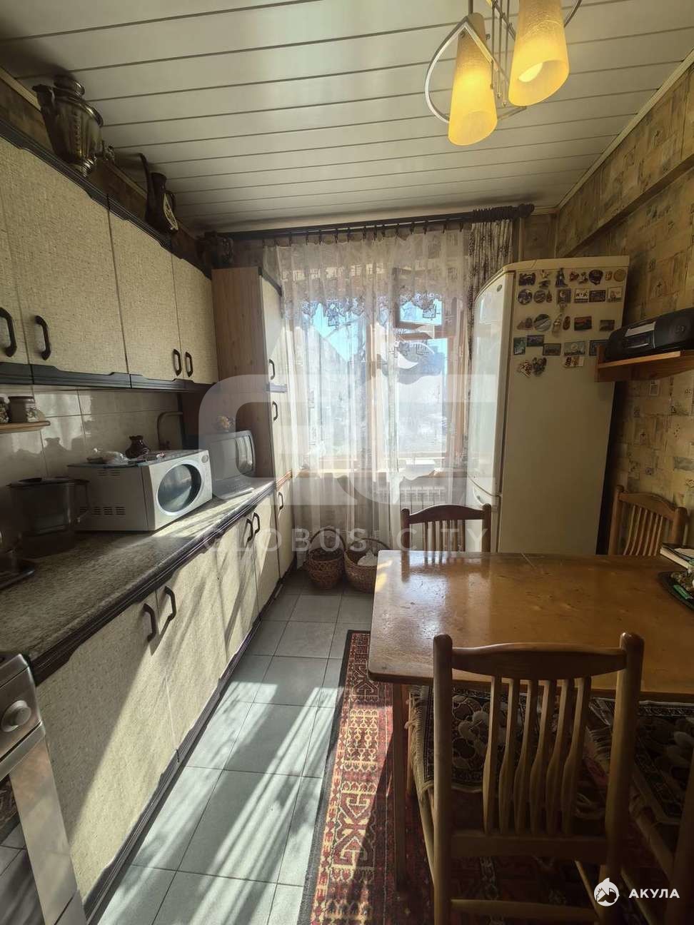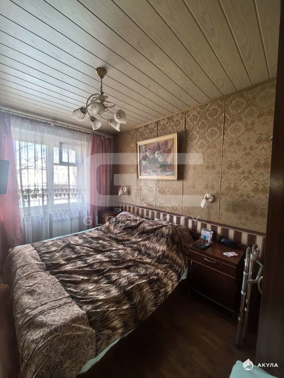 - балкон застеклён и обшит деревянной вагонкой, выходит во двор.